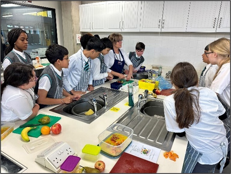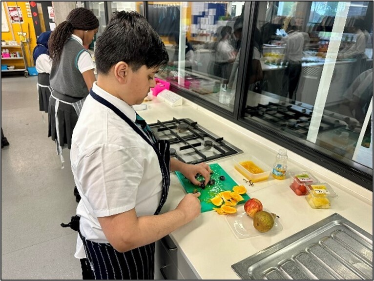 Recently, Year 7 students had the opportunity to learn about food hygiene, preparation, and safe cutting techniques. This session was a great way to teach students about the importance of safe food handling practices, especially when preparing food at home. Students learned about the correct way to handle food, including washing hands, and keeping work surfaces clean. They were also taught how to use different utensils and knives safely, and how to cut vegetables and fruit without causing injury. Overall, this session was a valuable learning experience that will help students stay safe and healthy when preparing food in the future.