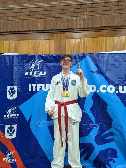 Dean has worked incredibly hard over the last year and has been on a fantastic journey. He represented England at the ITFU European championships in Madrid in November, where he secured two silver medals and, more recently, won gold in sparring to retain his British title and obtained a bronze for patterns at the ITFU British Open Championships held in Birmingham. What an achievement!